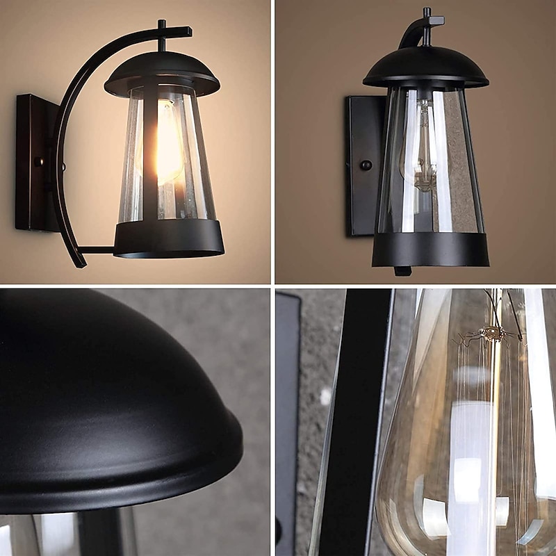 Waterproof Wall Sconce Light Fixture Antique Outdoor LED Wall Lamp with Glass Shade E27 Socket Metal Weatherproof Sconce 110-240V 2