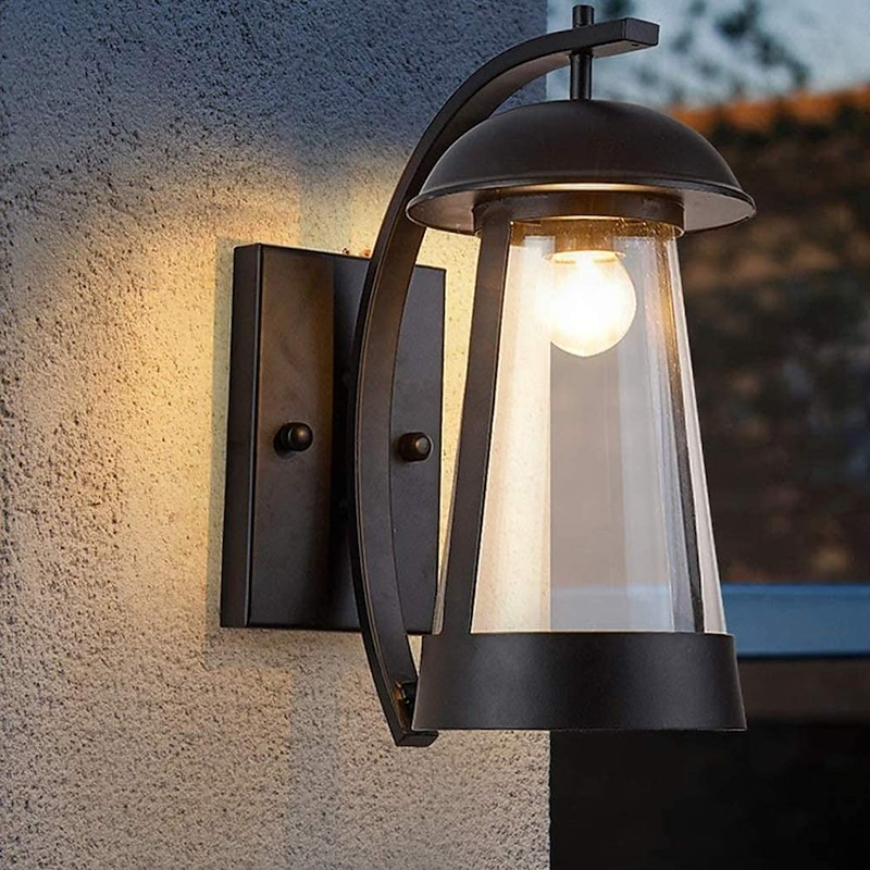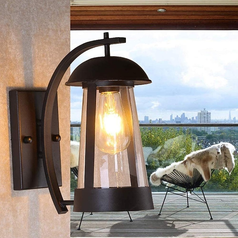 Waterproof Wall Sconce Light Fixture Antique Outdoor LED Wall Lamp with Glass Shade E27 Socket Metal Weatherproof Sconce 110-240V 1