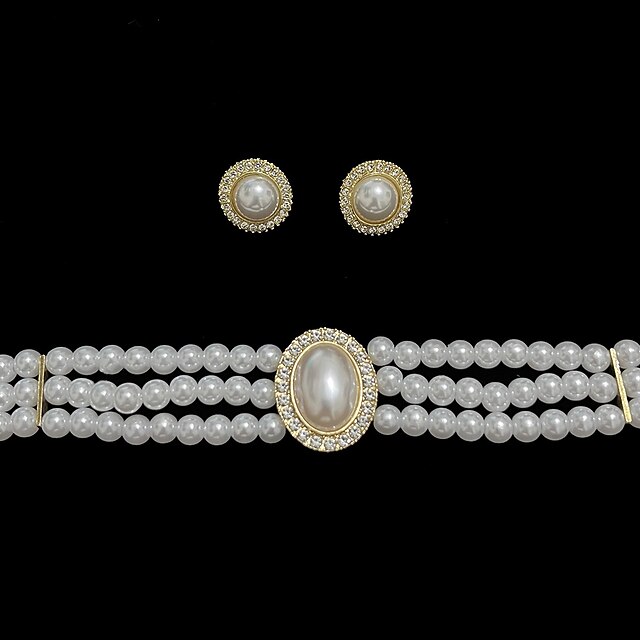 More information about Jewelry Set 1 set Imitation Pearl Rhinestone 1 Necklace Earrings Women's Elegant Simple Layered Jewelry Set For Wedding Party Wedding Guest
