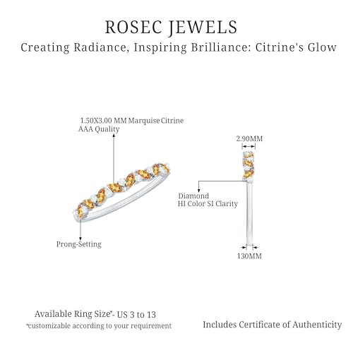 Natural Citrine Diamond Wedding Band, AAA Quality, Certified Citrine Anniversary Ring - With Jewelry Box 4
