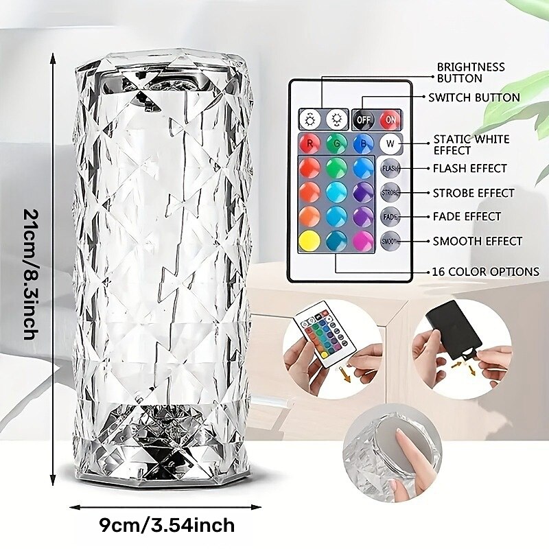 More information about 1pc Crystal Rose Ambiance Lamp, Bedroom Bedside Lamp, LED Night Light, Romantic Mood Lamp, Birthday Gift LED Touch with Remote Control