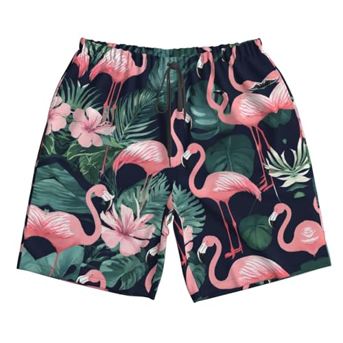 Pink Flamingo Print Men's Swim Trunks | rapid Dry Drawstring Beach Shorts