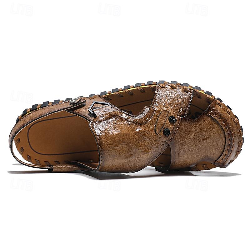 Men's Brown Leather Sandals with Adjustable Strap and Stylish Stitching – Comfortable and Durable for Casual Outings, Beach and Everyday Wear 35