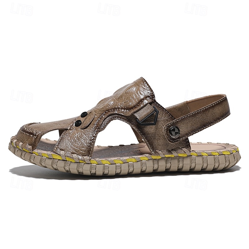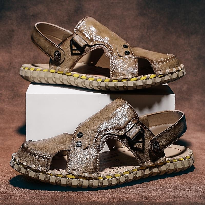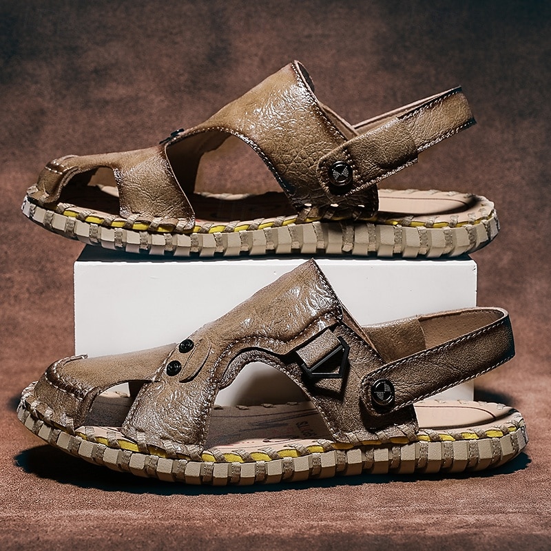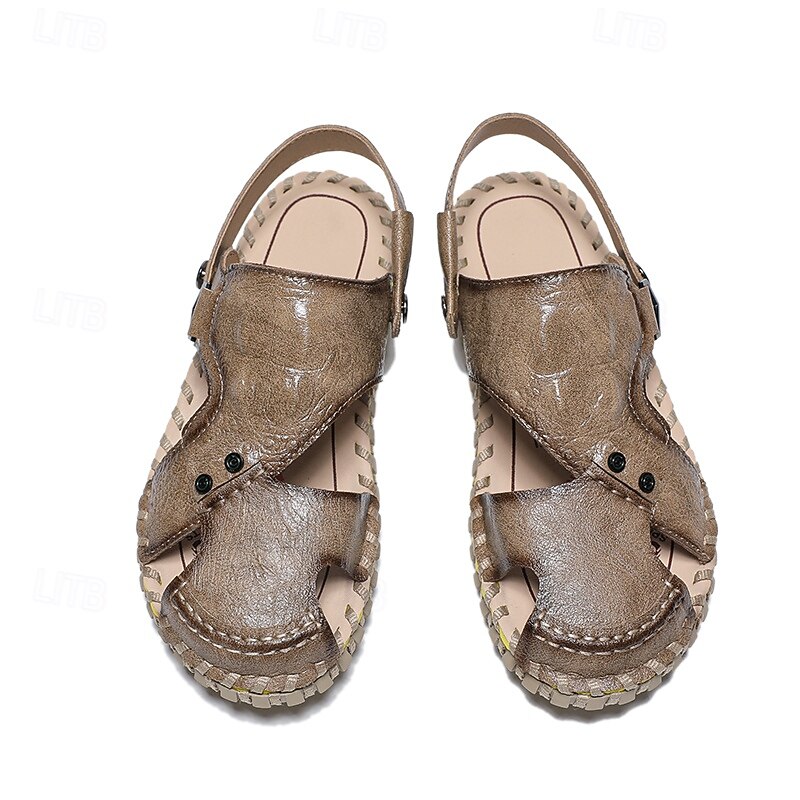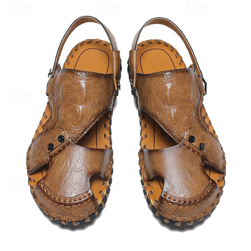 HOT ! Men's Brown Leather Sandals with Adjustable Strap and Stylish Stitching – Comfortable and Durable for Casual Outings, Beach and Everyday Wear
