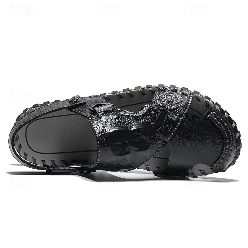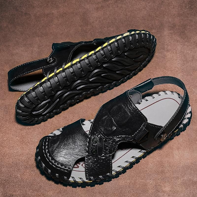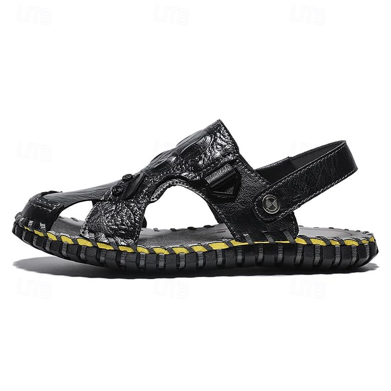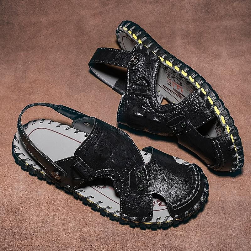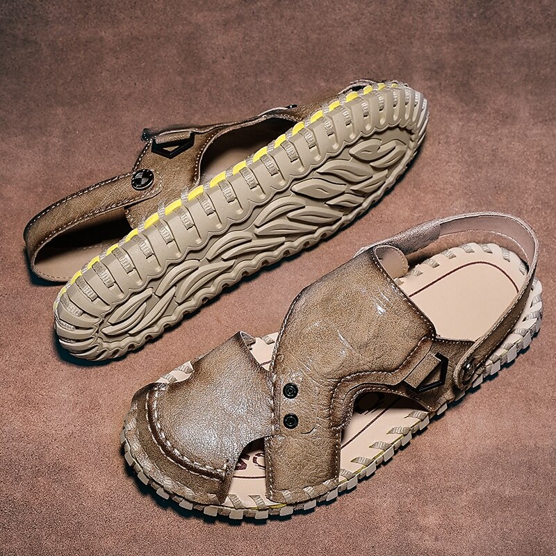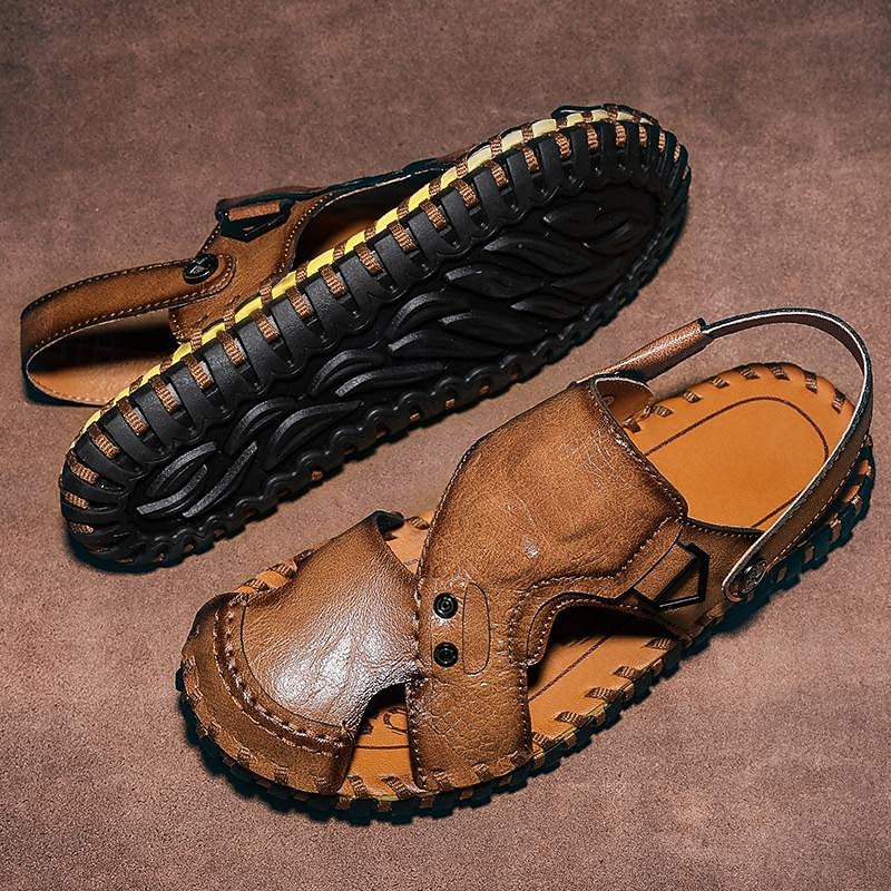 HOT ! Men's Brown Leather Sandals with Adjustable Strap and Stylish Stitching – Comfortable and Durable for Casual Outings, Beach and Everyday Wear