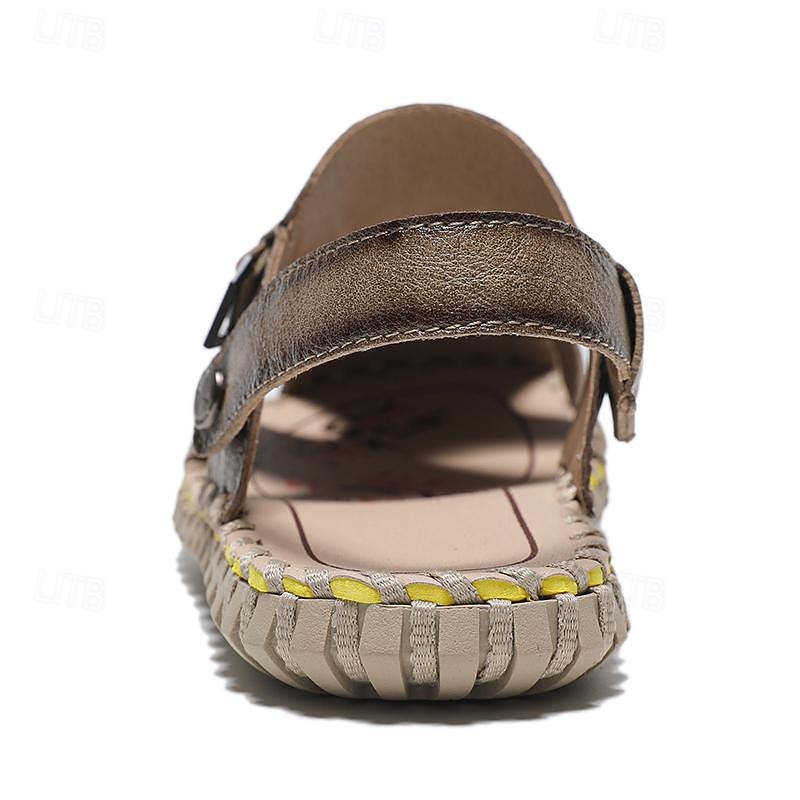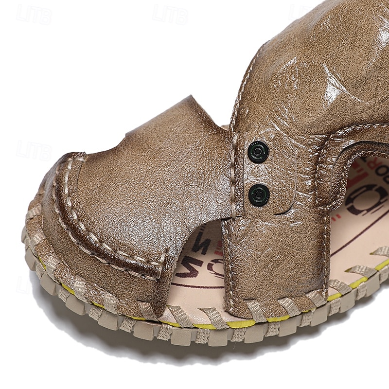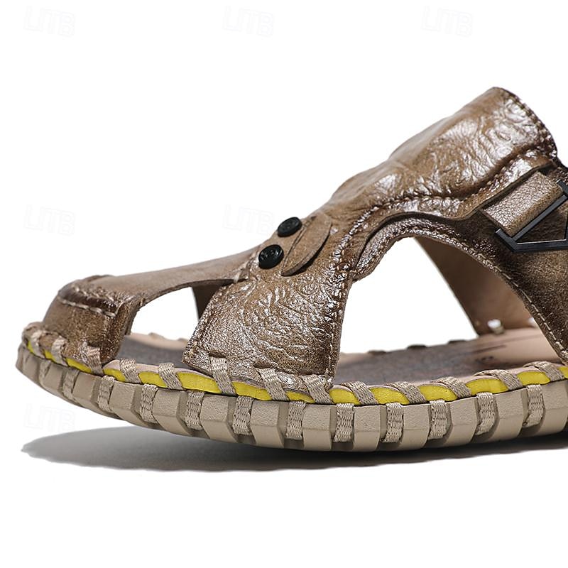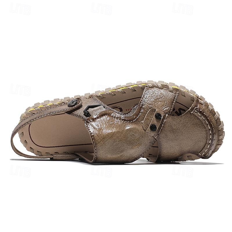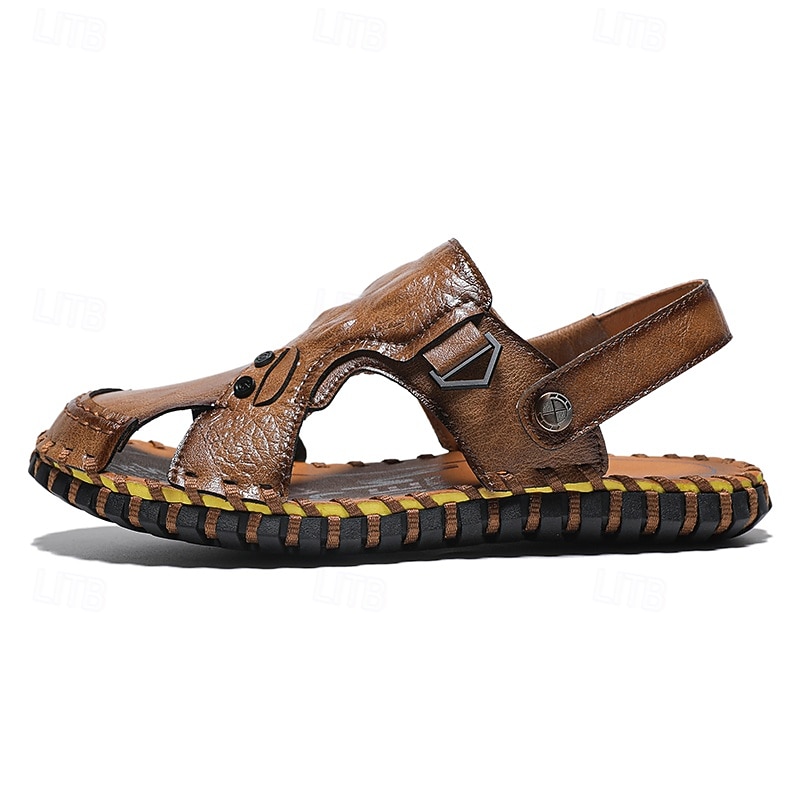 Men's Brown Leather Sandals with Adjustable Strap and Stylish Stitching – Comfortable and Durable for Casual Outings, Beach and Everyday Wear 36