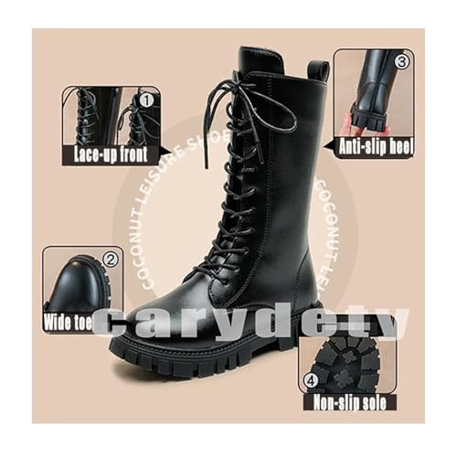 More information about Girls Boots Combat Boots PU Leather Lace Up Side Zipper Booties Mid Calf Platform Boot Little Kid/Big Kid 4-11 Years