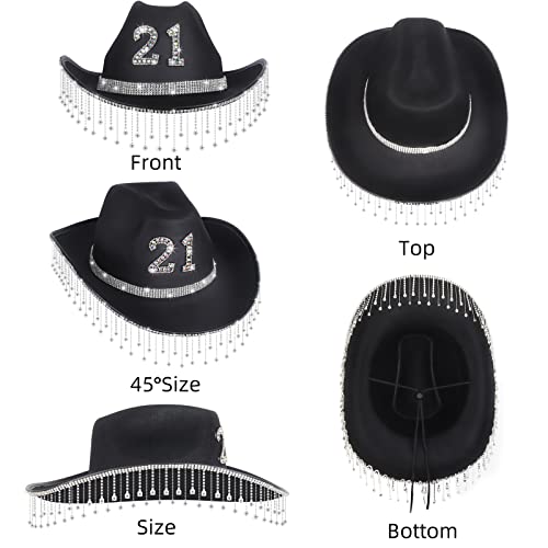 • 😻【Funny 21st Birthday Gifts】 - You can start by wearing this 21st black cowboy hat, a glitter black cowgirl hat with a special shiny rhinestone, perfect for 21st Birthday party decorations.