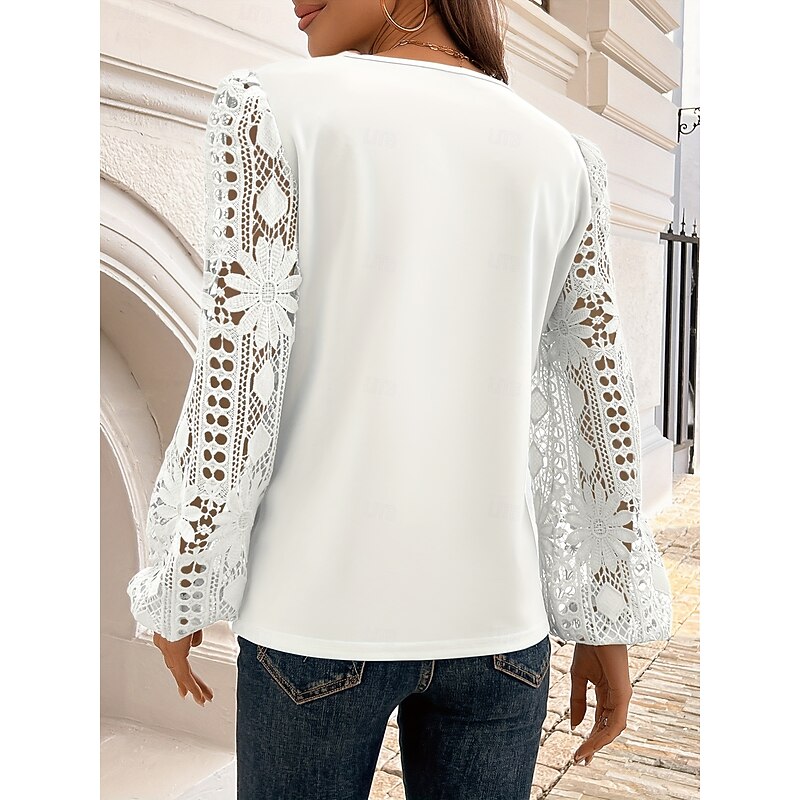Women's Blouse Elegant Stylish Basic Long Sleeve Asymmetrical Regular Tops Daily Lace White Pink Red Blue Green Spring Fall Winter 6