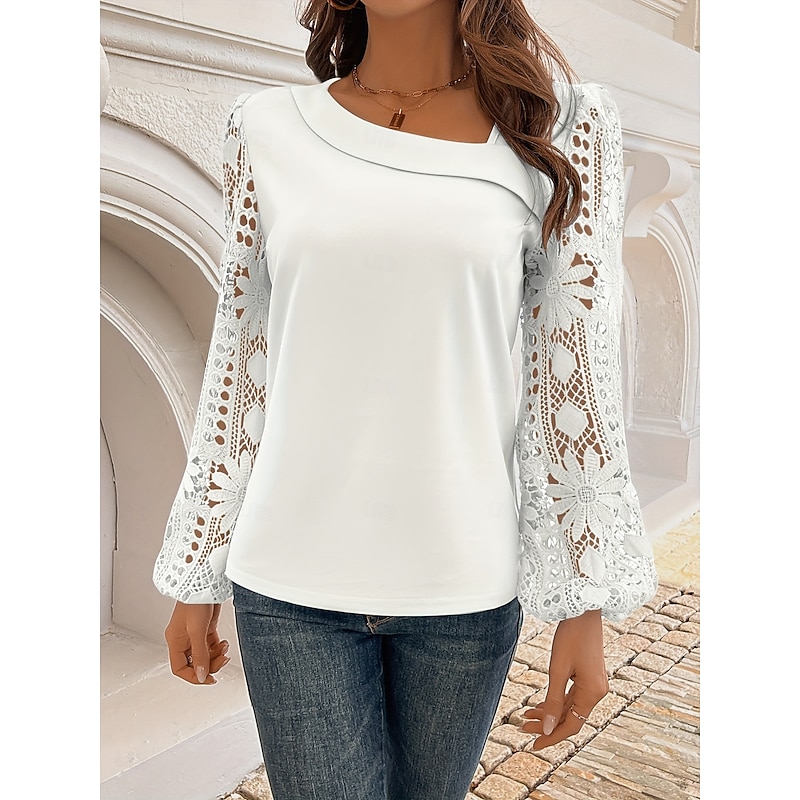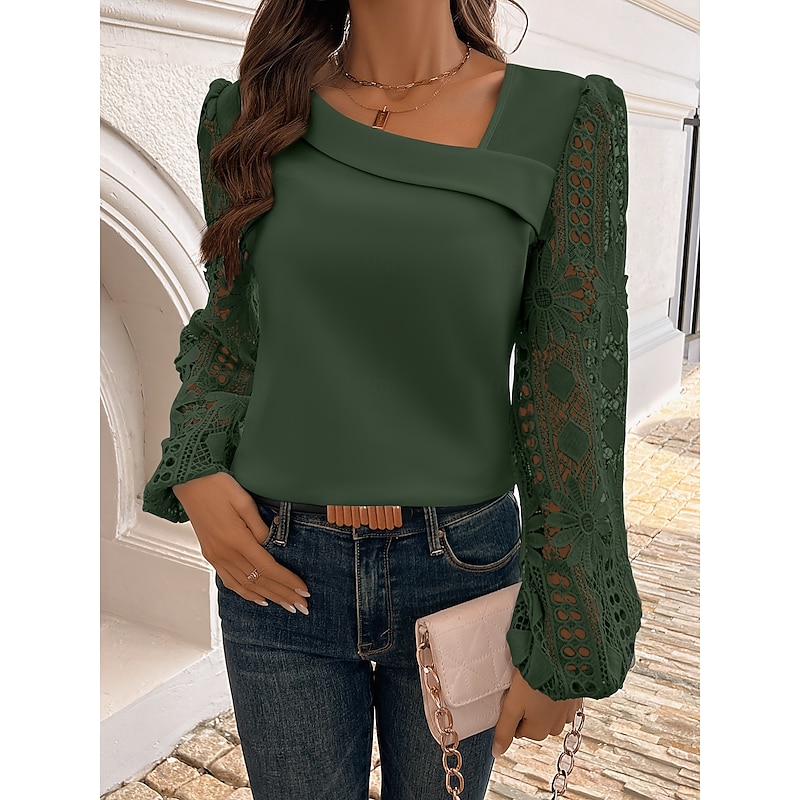 This Women's Blouse Elegant sleek Basic Long Sleeve Asymmetrical Regular Tops Daily Lace White Pink Red Blue Green Spring Fall Winter combines elegant design with practical functionality. Every detail has been carefully considered to ensure you get the best possible experience. The superior construction means this product will serve you well for years to come.