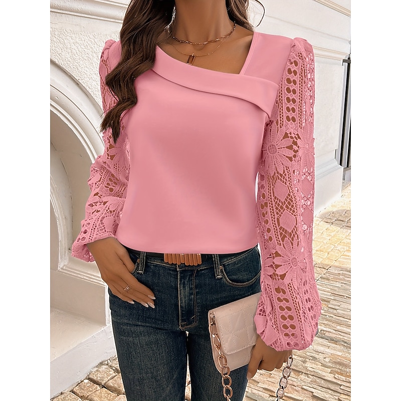 Women's Blouse Elegant Stylish Basic Long Sleeve Asymmetrical Regular Tops Daily Lace White Pink Red Blue Green Spring Fall Winter 12
