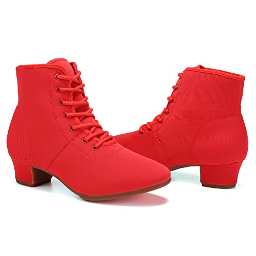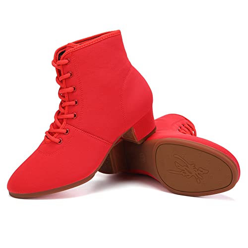 HROYL Women's Latin Dance Boots Low Heel Close Toe Ballroom Tango Performance Practice Teaching Dancing Shoes,LHD-GBNJB