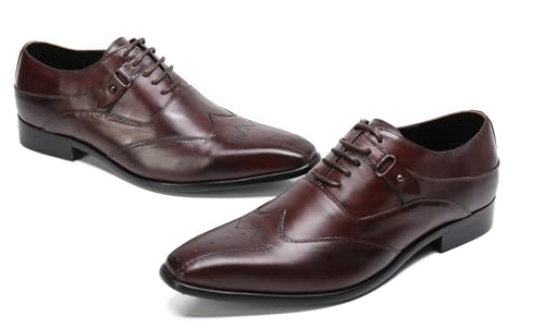 Santimon Mens Brown Dress Leather Oxfords Shoes with Buckle Detail – Classic Lace-Up Wingtip Formal Shoes for Business, Office, Wedding 1