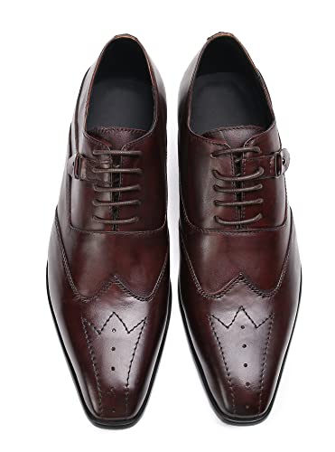 Santimon Mens Brown Dress Leather Oxfords Shoes with Buckle Detail – Classic Lace-Up Wingtip Formal Shoes for Business, Office, Wedding 7