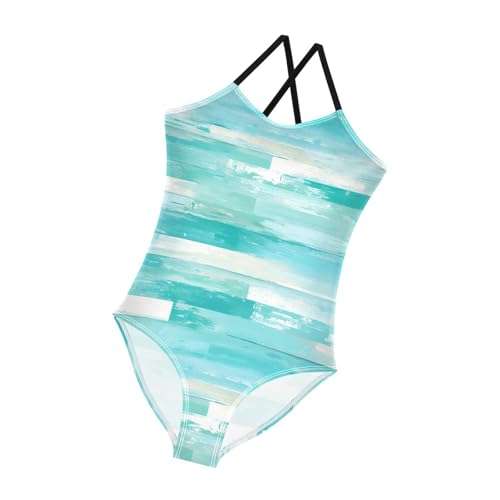 KLL Teal Turquoise Green Painted Wood Toddler Girls 1 Piecing Bathing Suit Summer Swimwear Adjustable Strap UPF 50+