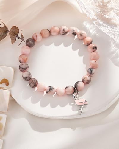 • Material & Size - Our flamingo bracelet is made of natural stone with a size of 8mm and a lovely flamingo charm. Elastic cord girth is 7 inch, fit most wrists