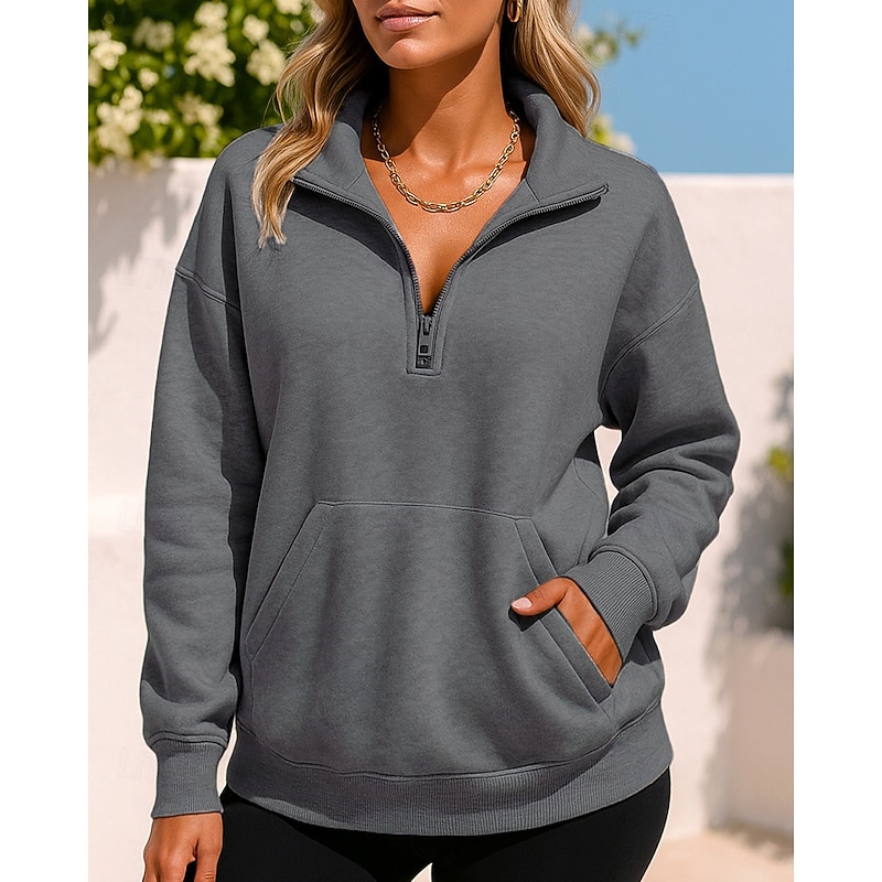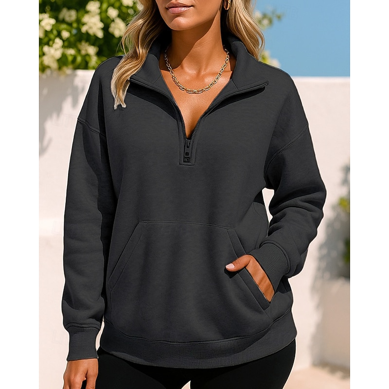 $21.99 - Women's Pullover Sweatshirt Casual Tops Quarter Zipper Long Sleeve Top Athleisure Solid Colored Outdoor Travel Sports Sportswear Activewear Black Dark Gray Fuchsia 2025. Shop for cheap Hoodie & Sweatshirt online? Buy at lightinthebox.com on sale today!