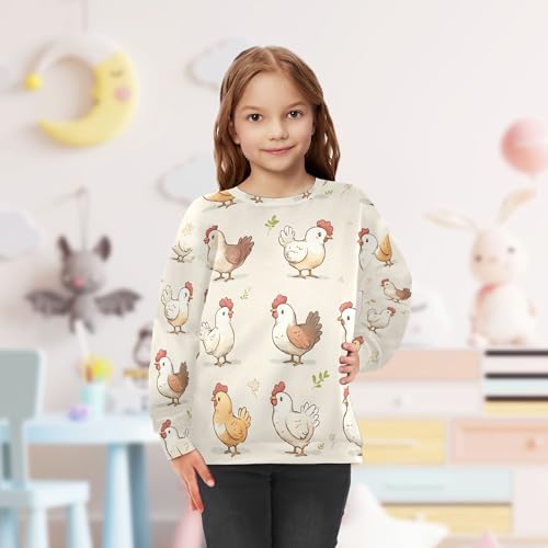 JUNZAN Cartoon Cute Chicken Beige Big Girls Hoodie Sweatshirt Fleece Outerwear for Kids Camping 4T 6