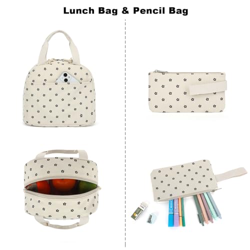 Care instructions: Hand Wash Only【3-in-1 Premium School Set】This complete package includes 1* girls' corduroy bookbag + 1* insulated lunch box + 1* multi-purpose pencil case, specifically designed for kids aged 8+ as the ultimate back-to-school companion and everyday organizational solution.【Material】Girls backpack set is crafted with tear-resistant tender corduroy fabric and reinforced double-stitched seams, the backpack features cushioned shoulder straps with ergonomic padding and a breathable back cushion that evenly distributes weight for heavy loads.【Dimensions】Measuring 12L x 6.7D x 17H, this versatile corduroy backpack functions as both a school bookbag and 15 laptop carrier, featuring multiple organizational pockets for textbooks, binders, stationery, and personal essentials.【Pro-Grade Lunch System】The lunch box utilizes food-grade insulated aluminum foil lining to maintain optimal temperatures for 4-6 hours, securely holding two 24oz containers plus snacks and drinks in its leak-proof compartment with easy-clean interior.【Multi-purpose Pouch】Pencil bag can enough hold standard pencils, keys or other small item, also can use as a mini purse for school, travel, or daily errands. Perfect for everyday use. superior materials and excellent craftsmanship ensure long-lasting durability.