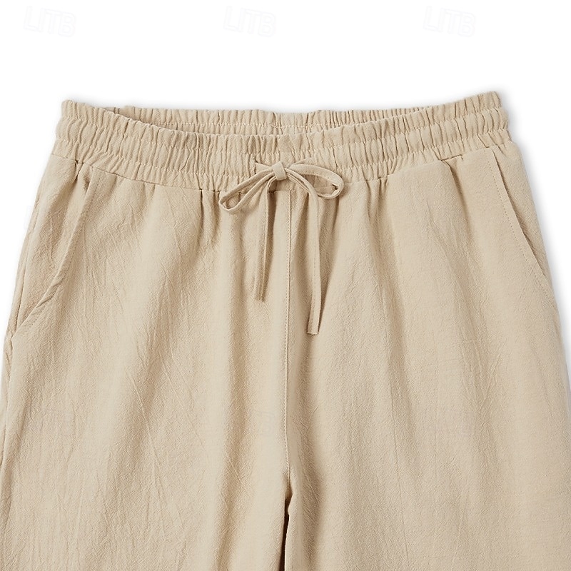 Men's Linen Pants Trousers Summer Pants Harem Pants Pocket Drawstring Elastic Waist Plain Comfort Breathable Full Length Outdoor Casual Daily Fashion Classic Style White Yellow 9