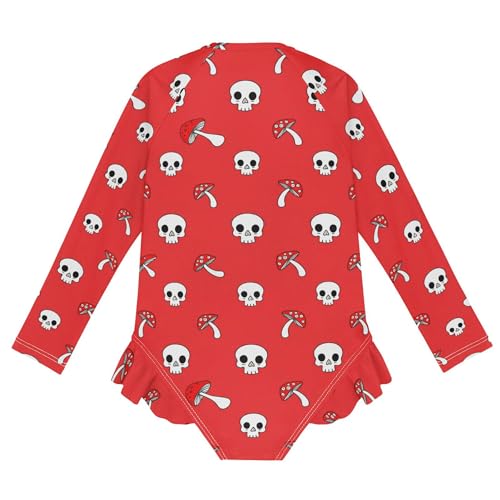 Skull Mushroom Girls Long Sleeve Rashguard Swimsuit UV Protection One-Piece Swimwear Bathing Suit B0404384 4