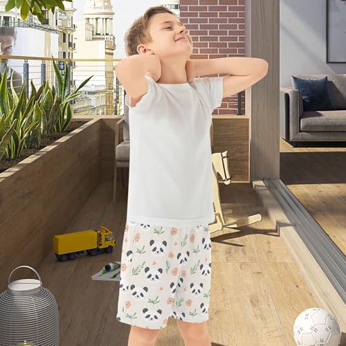 Cute Panda Bear Flower Boys Active Basketball Shorts Lightweight Summer Sports Shorts with Pockets for Kids 2