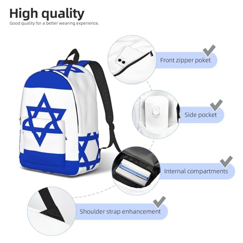 • Stylish Design: Crafted From High-Quality Canvas, This Israeli Flag Print Laptop Backpack Is Both Durable And Stylish, Making It A Perfect Choice For Daily Use, Travel, And Work.