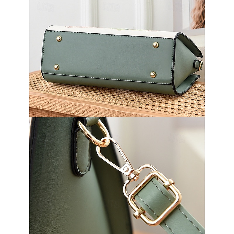 Women's Embroidered Faux Leather Handbag with Scarf Accent – Elegant Floral Top Handle and Shoulder Bag for Office, Weddings and Daily Outings 17