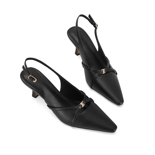 SOVANYOU Women's Pointed Toe Slingback Pumps Low Kitten Heels Dress Shoes Comfortable Dress Work Pumps 1