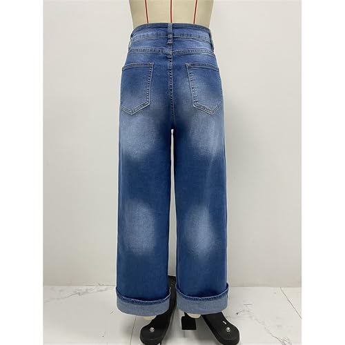 Women's Washed Dark Blue Straight Leg Jeans High Stretch Washed High Waist Jeans Wide Leg Fashion Nine-Point Jeans 6