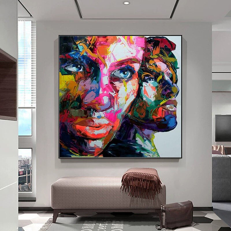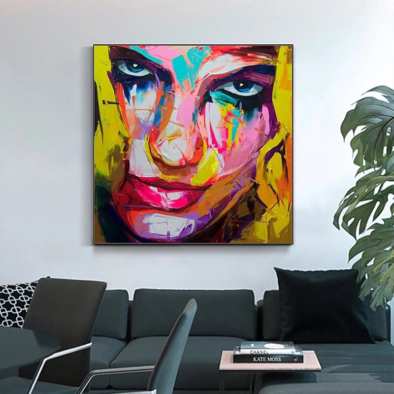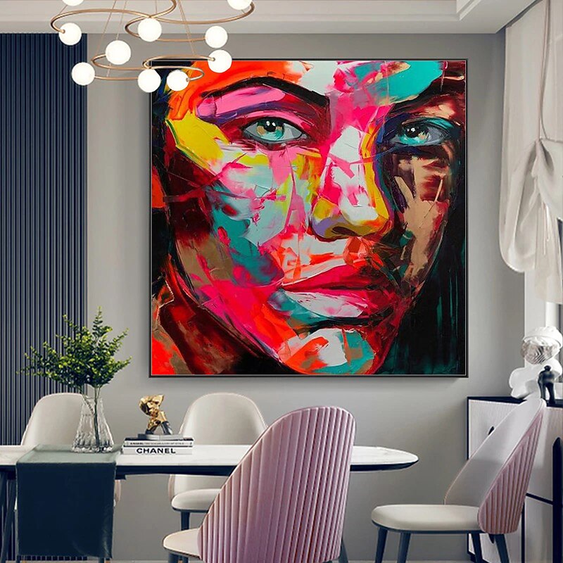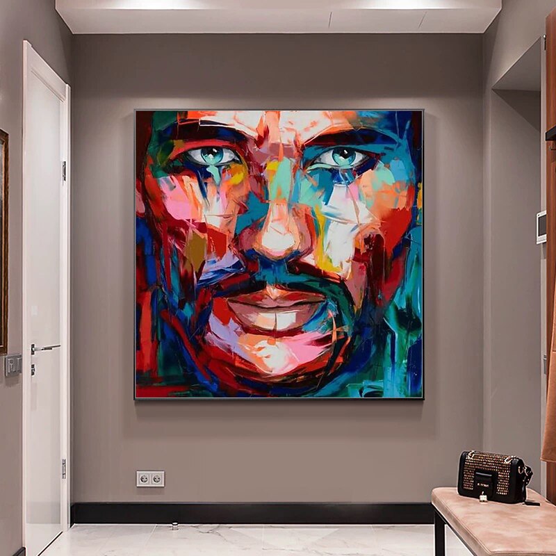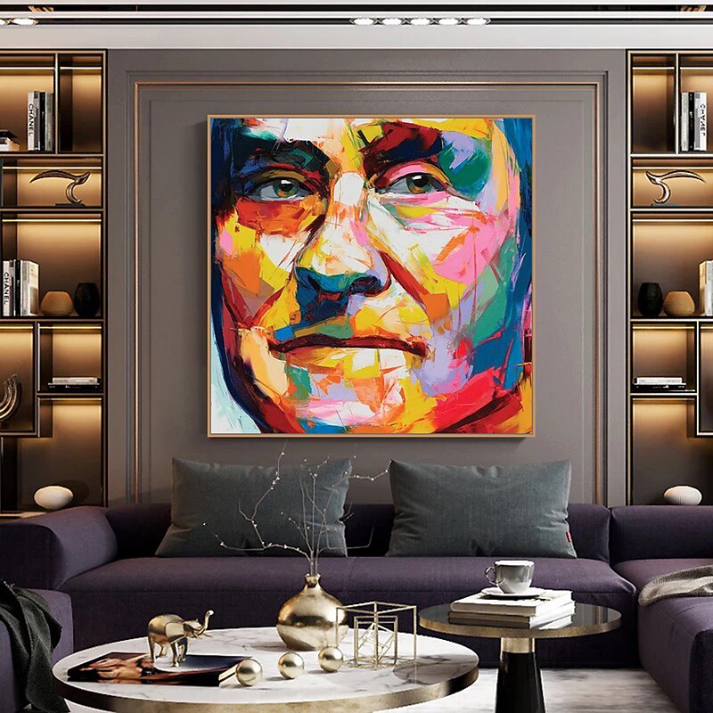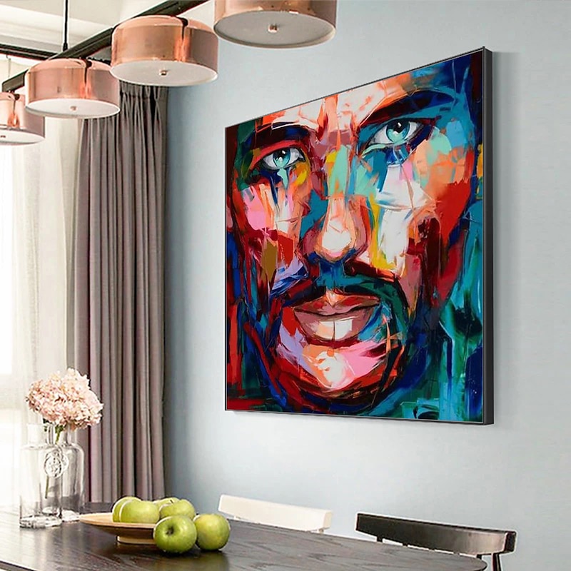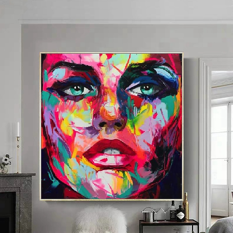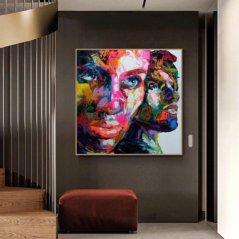 Mintura Handmade Figure Oil Paintings On Canvas Wall Art Decoration current Abstract Face Picture For Home Decor Rolled Frameless Unstretched Painting