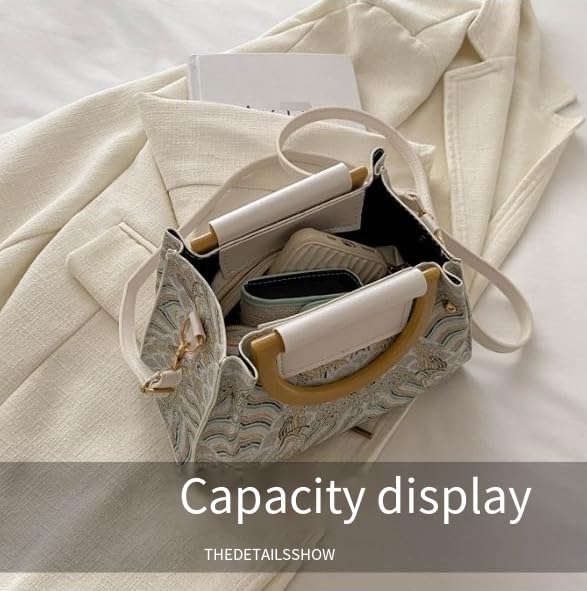 Fabric type: Synthetic LeatherOrigin: ImportedClosure type: ZipperLining: Standard Synthetic LiningELEGANT DESIGN: Vintage-style mini handbag featuring intricate wave pattern embroidery and luxurious floral detailing with a sophisticated top handle designVERSATILE CARRY: Includes both a sturdy top handle and an adjustable shoulder strap for crossbody wear or hand-carry optionsPREMIUM CONSTRUCTION: Crafted with detailed embroidery work and durable materials, featuring a structured shape that maintains its formPRACTICAL SIZE: Compact mini size perfect for essential items while making a fashion statement, ideal for both daily use and special occasionsSTYLISH DETAILS: Distinctive wooden/resin handle accent and decorative flap closure add sophisticated touches to this retro-inspired accessory Perfect for everyday use. superior materials and excellent craftsmanship ensure long-lasting durability.