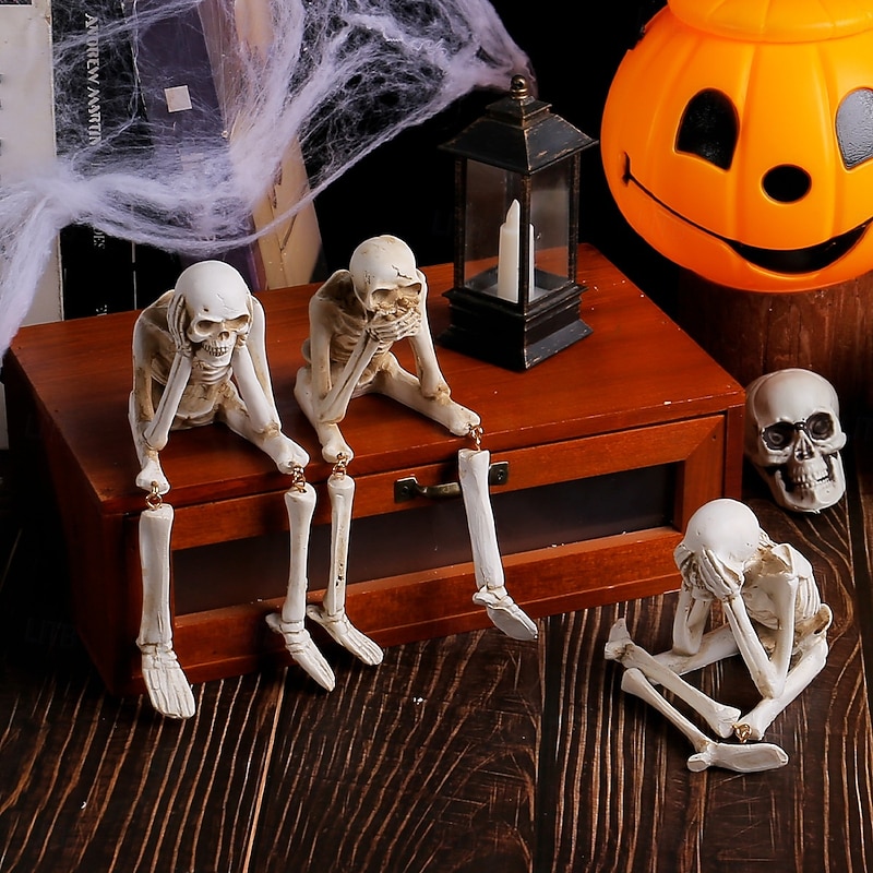$12.49 - Halloween Resin Skeleton Figurine, See No Evil Hear No Evil Speak No Evil Skull Three Wise Skeleton Statue, Spooky Ghost Festival Decor, Horror Skeleton Craft Ornament 2025. Shop for cheap Halloween Hanging & Tabletop Decorations online? Buy at lightinthebox.com on sale today!