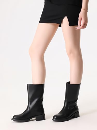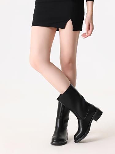 Shoe’N Tale Mid Calf Boots for Women Wide Calf Riding Boots Fit Chunky Block Heel design Fashion Round Toe comfatable low heel Slip on Style for Casual 5