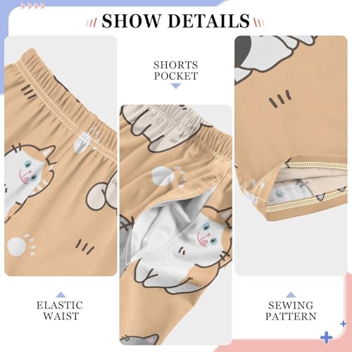 Boys' Pants Cartoon Cats Paws Orange Long Bottoms Jogger Pants Elastic Waist Trousers with Pockets S-XL 7