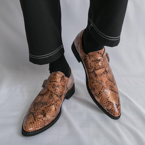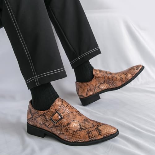 Mens Retro Snakeskin Leather Slip-On Buckle Monk Dress Shoes Pointed Toe Low Chunky Heels Non-Slip Casual Shoes for Formal Business Wedding 7