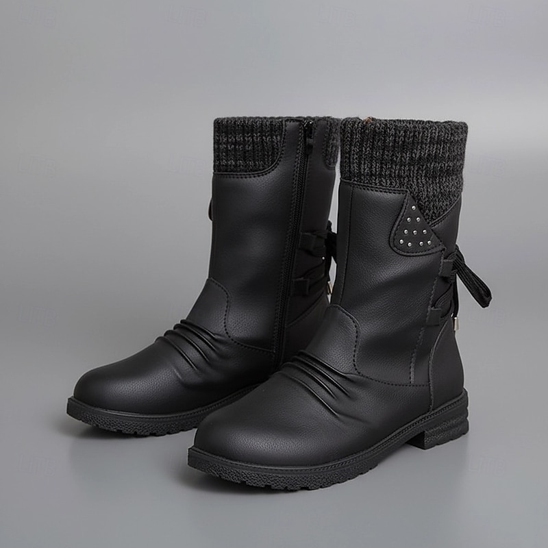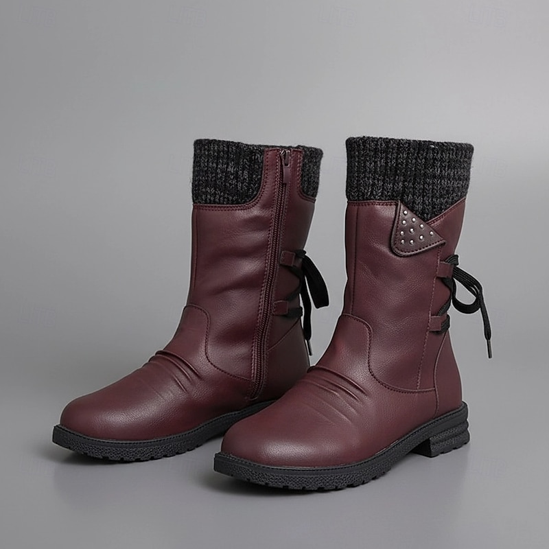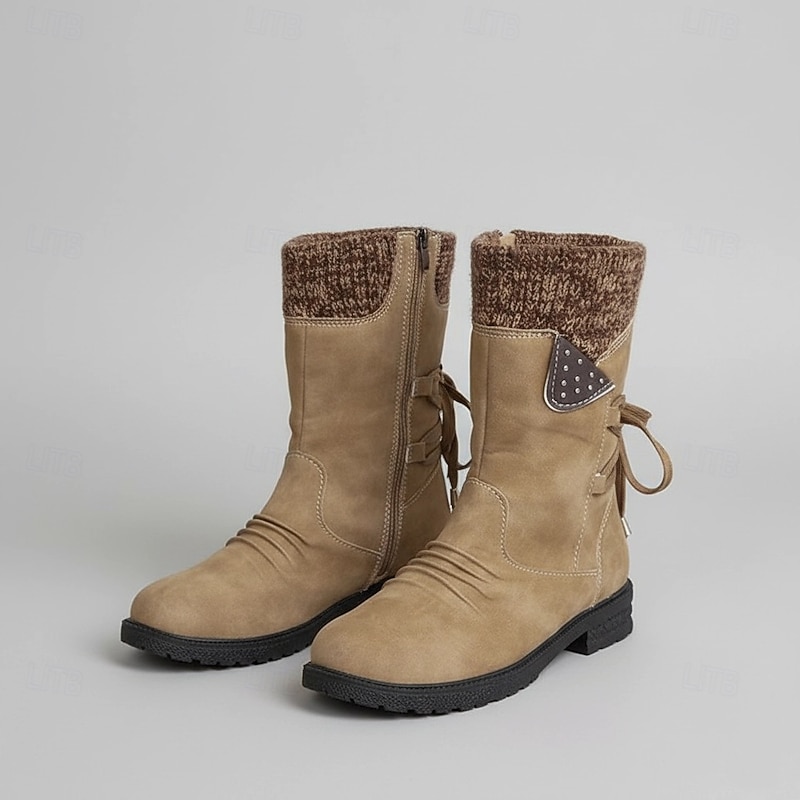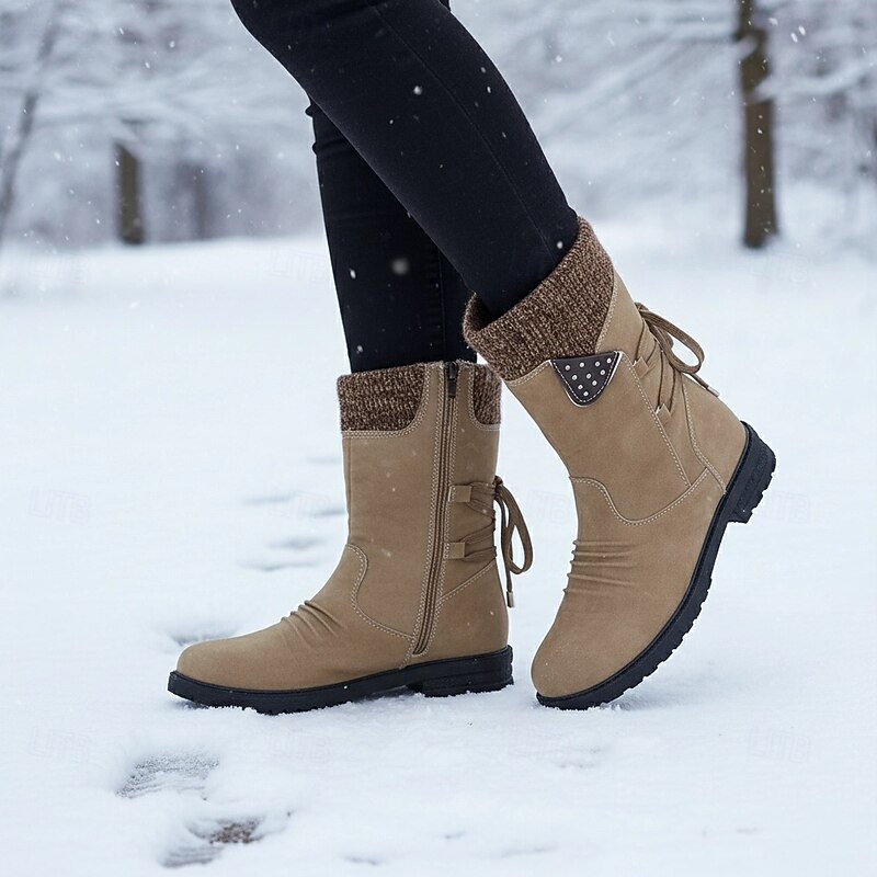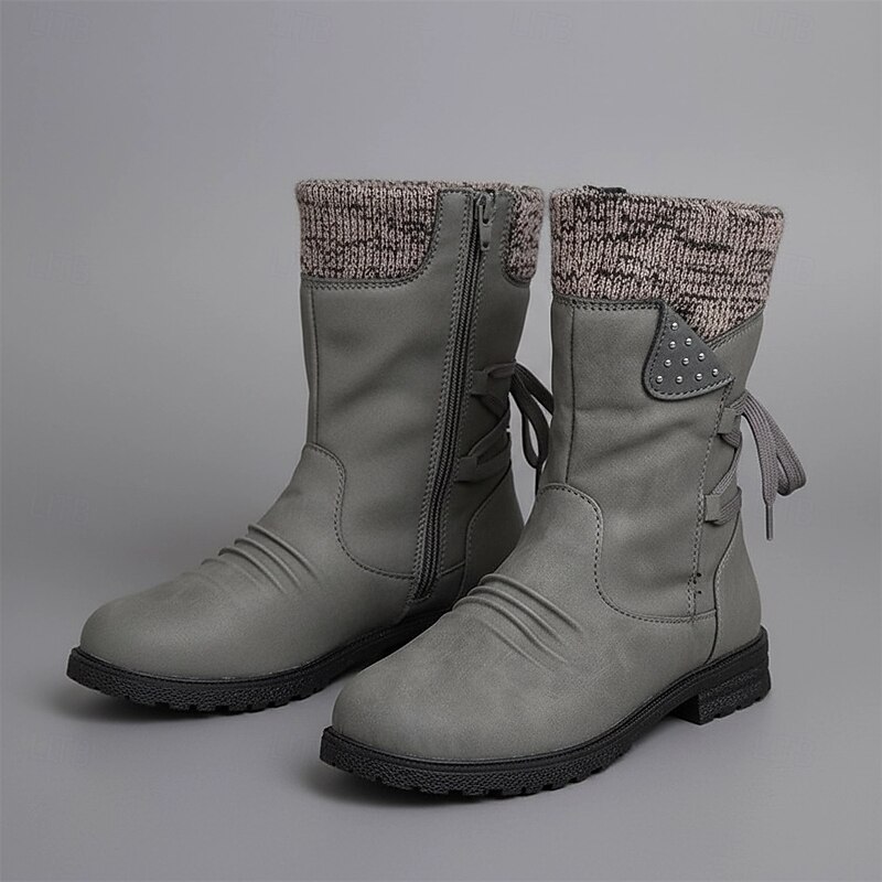 More information about Women's Gray Suede Mid-Calf Boots with Knit Cuffs and Lace-Up Detail - Stylish Winter Boots with Side Zipper and Rugged Sole