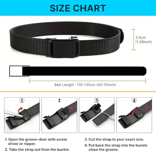 Men's Tactical Nylon Belt – Adjustable No-Hole Military Style Belt with Metal Buckle for Work, Casual, Hiking & Outdoor Use 4