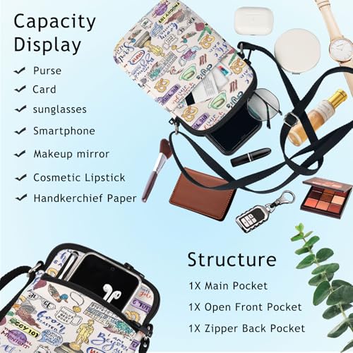 • 【Size】: 21.4cm(8.42inch) *14.5cm(5.7 inch) . The shoulder strap is adjustable, the shortest can be adjusted to 43cm (16.9inch) and the longest can be stretched to 80cm (31.5inch). The crossbody bag comes with a zipper main pocket, a front open pocket and a zipper rear pocket.The spacious space can put your spare purse, lipstick, card , keys, mobile phone and other sundries.