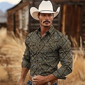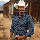 More information about Men's Aztec Tribal Ethic / African Western Shirt Cowboy Shirt Long Sleeve Vintage Western Style Tribal Outdoor Vacation Horse Race Spring & Summer Turndown Print Button-Down Burgundy Navy Blue Green