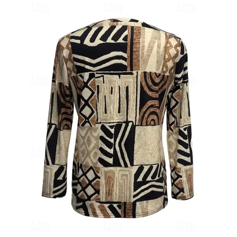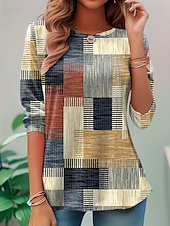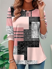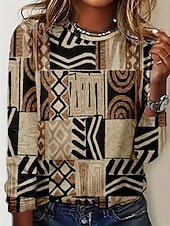 More information about Women's T Shirt Graphic Geometric Vintage Fashion Stylish Long Sleeve Crew Neck Regular Tops Daily Weekend Print Pink Blue Brown Khaki Summer Spring Fall