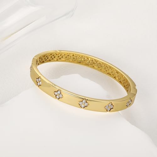 HOT ! Moissanite Bangle Bracelets for Women, 14K Gold Plated Four Leaf Clover Bracelet with D Color VVS1 Moissanite, Lucky Jewelry Gift for Her