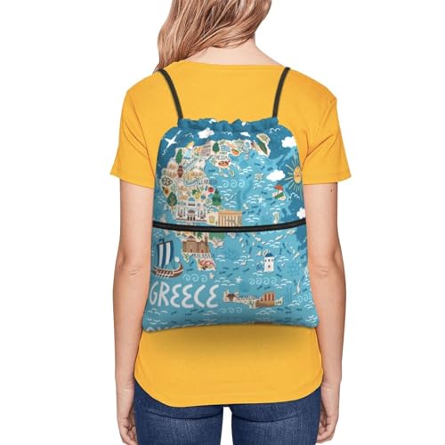 HOT ! Greece Map Drawstring Gym Bag Sports String Backpack For Beach Picnic, Family Outing