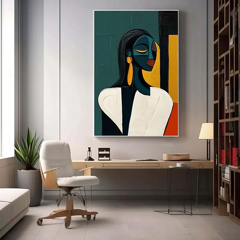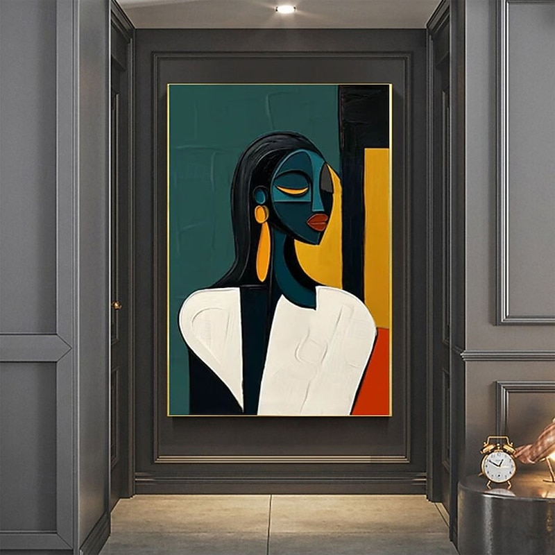 $123.99 - Handmade Modern Abstract Portrait painting hand painted with Bold Chromatic Contrast - Geometric oil paintings Feminine Figure in Cobalt Gold firgure for Contemporary Interior Accent Painting 2025. Shop for cheap People Paintings online? Buy at lightinthebox.com on sale today!