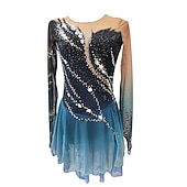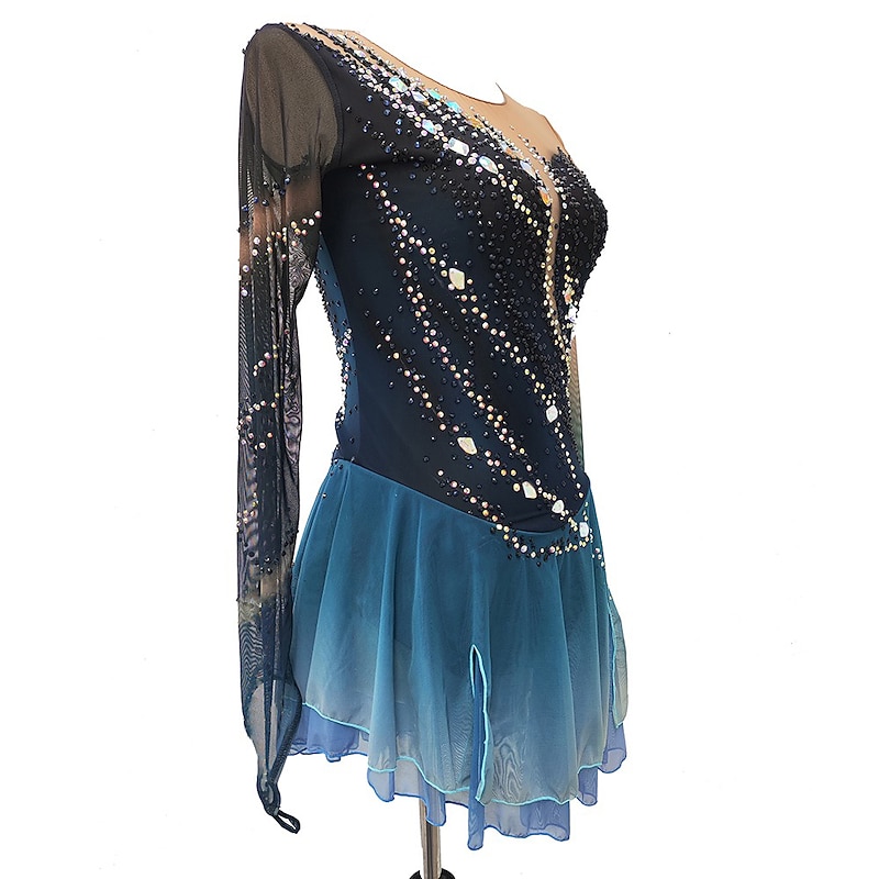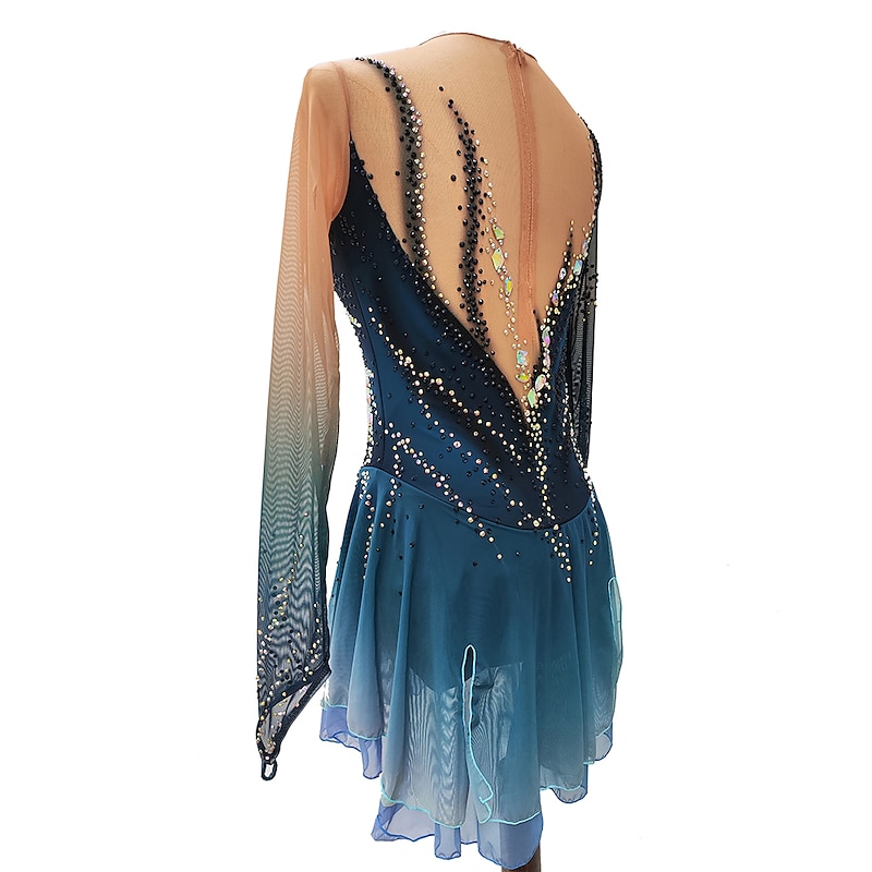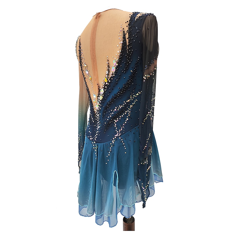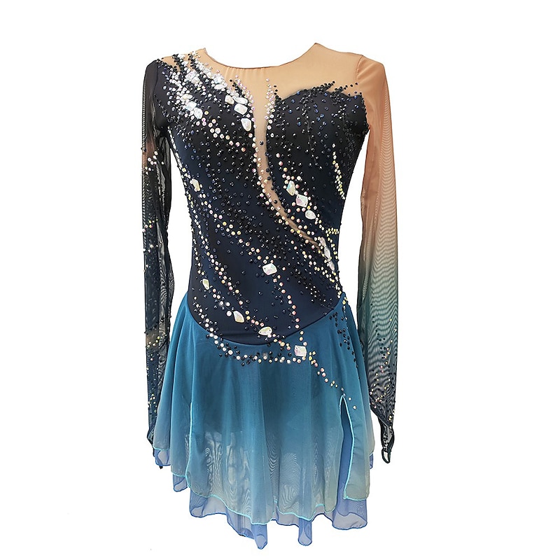 More information about Figure Skating Dress Women's Girls' Ice Skating Dress Dark Blue Thumbhole Halo Dyeing High Elasticity Professional Competition Skating Wear Thermal Warm Crystal / Rhinestone Long Sleeve Ice Skating