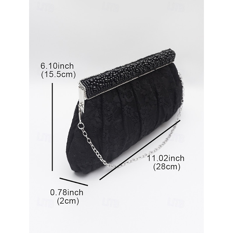 Women's Elegant Black Lace Evening Clutch Bag with Beaded Trim and Chain Strap – Perfect for Weddings, Parties, and Formal Events 12