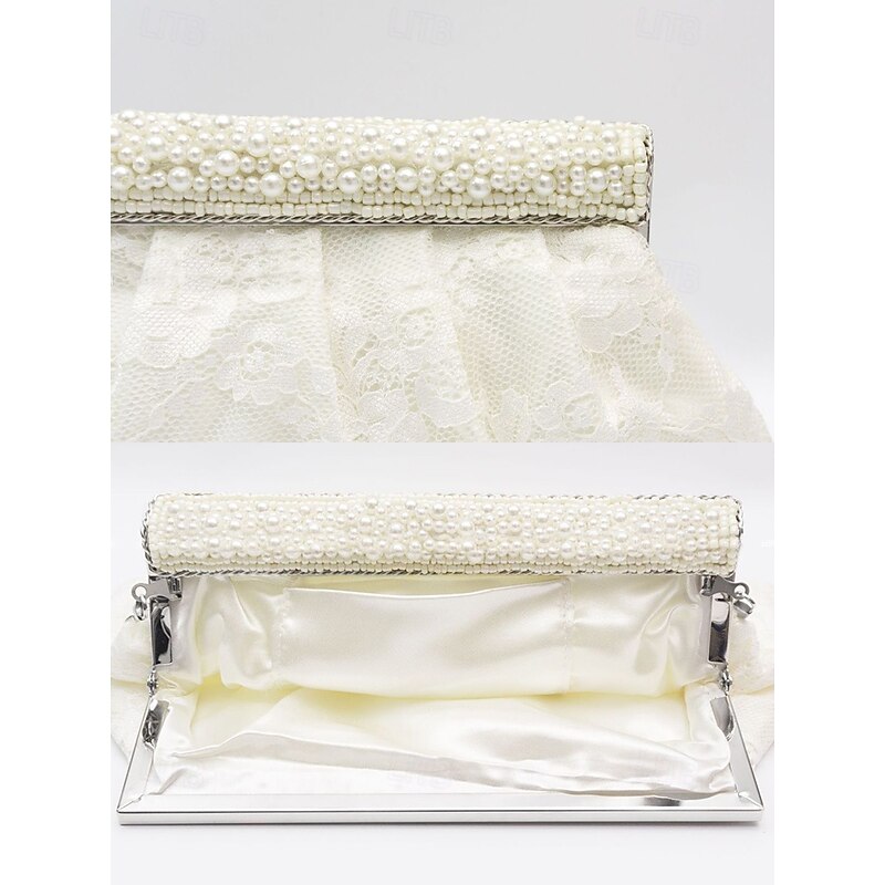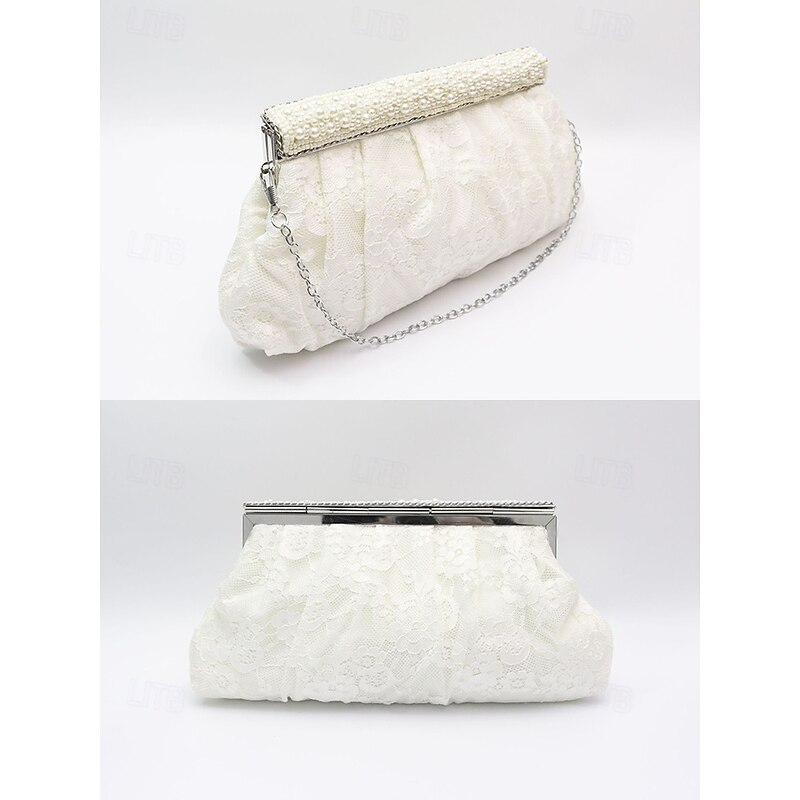 Women's Elegant Black Lace Evening Clutch Bag with Beaded Trim and Chain Strap – Perfect for Weddings, Parties, and Formal Events 13