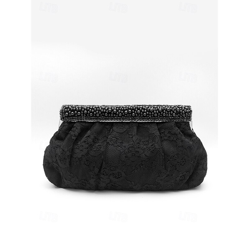 Women's Elegant Black Lace Evening Clutch Bag with Beaded Trim and Chain Strap – Perfect for Weddings, Parties, and Formal Events 1