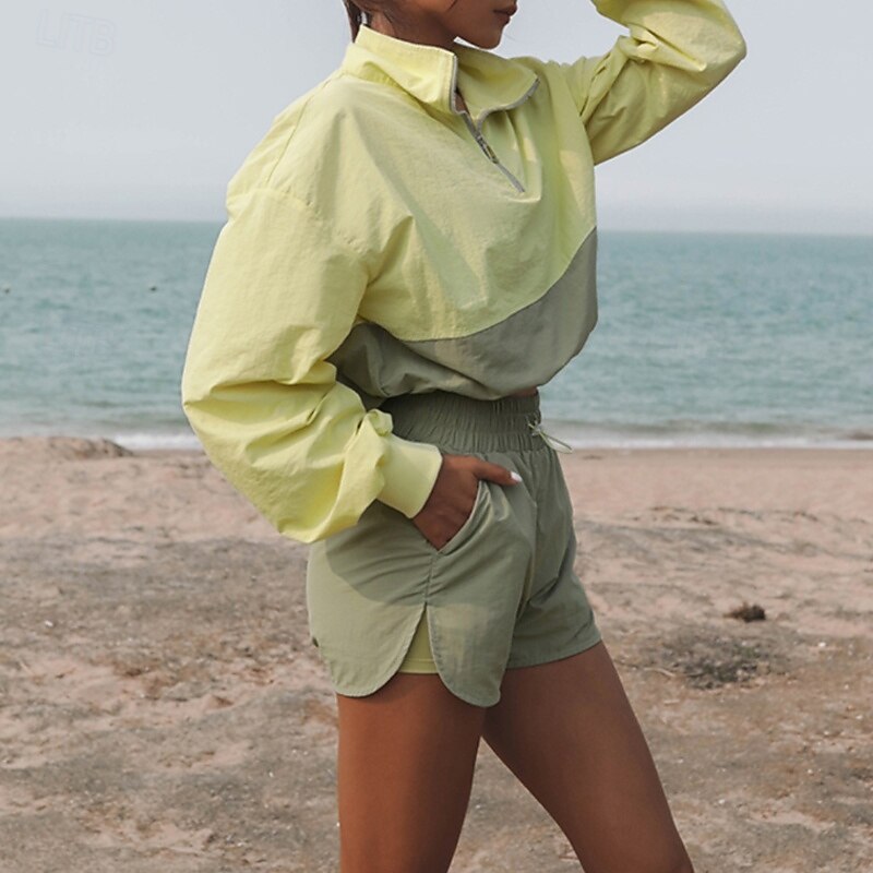 More information about Women's Tracksuit Running Jacket Running Shorts With Tights Patchwork Zipper Pocket Color Block Clothing Suit Fall White Green Gym Athleisure Running Windproof Lightweight Quick-drying Long Sleeve