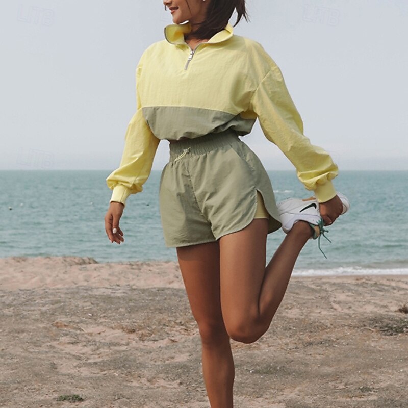 HOT ! Women's Tracksuit Running Jacket Running Shorts With Tights Patchwork Zipper Pocket Color Block Clothing Suit Fall White Green Gym Athleisure Running Windproof Lightweight Quick-drying Long Sleeve